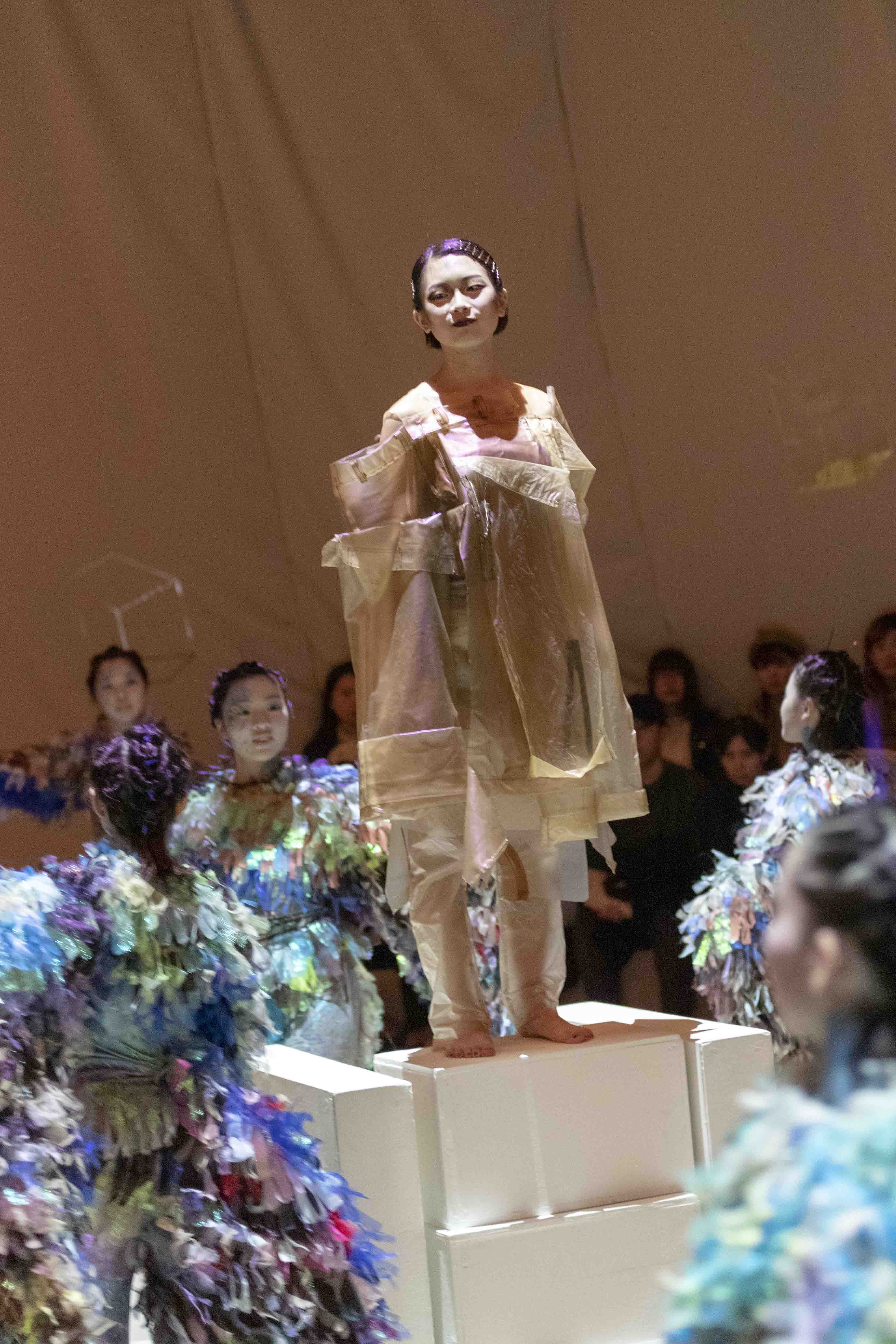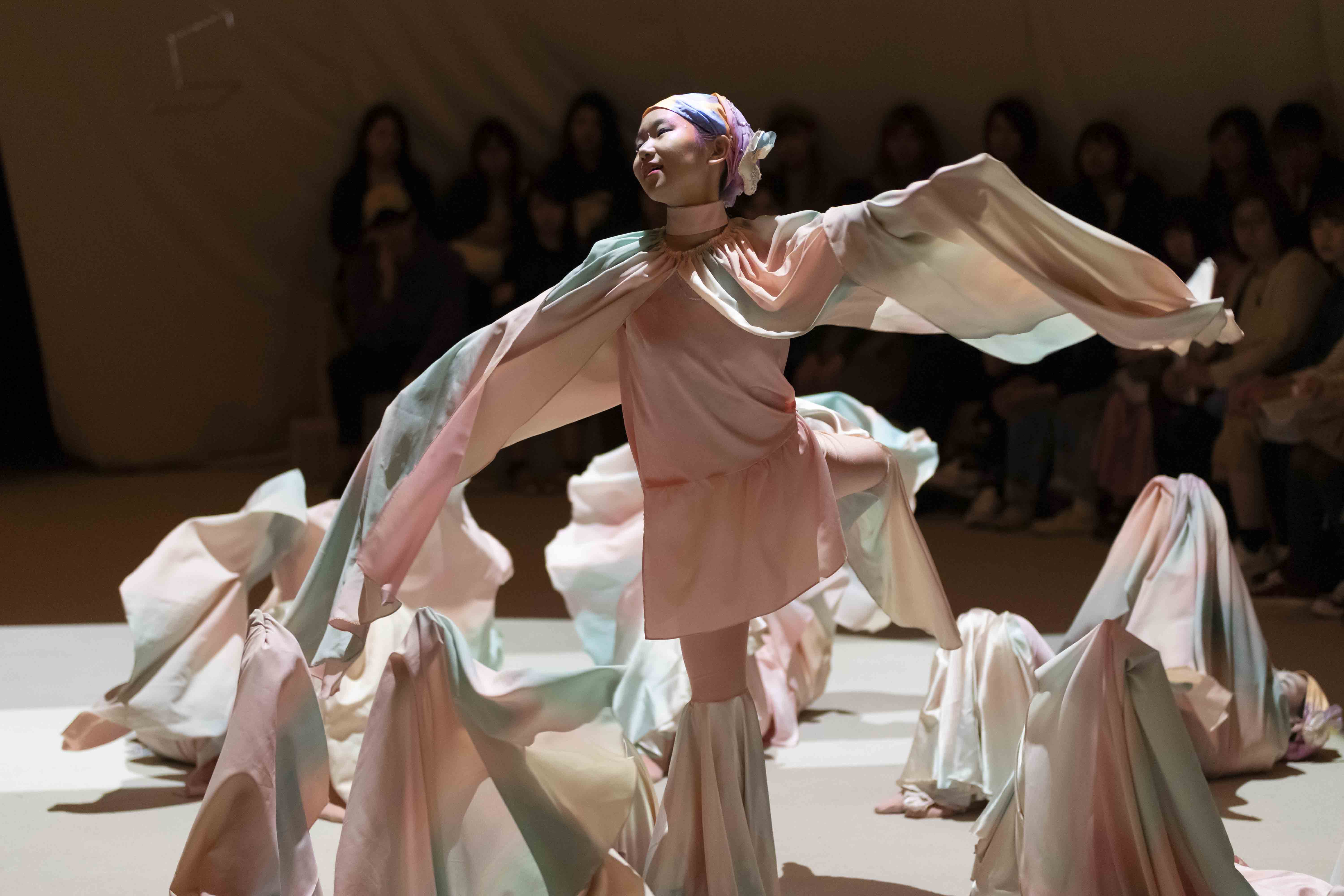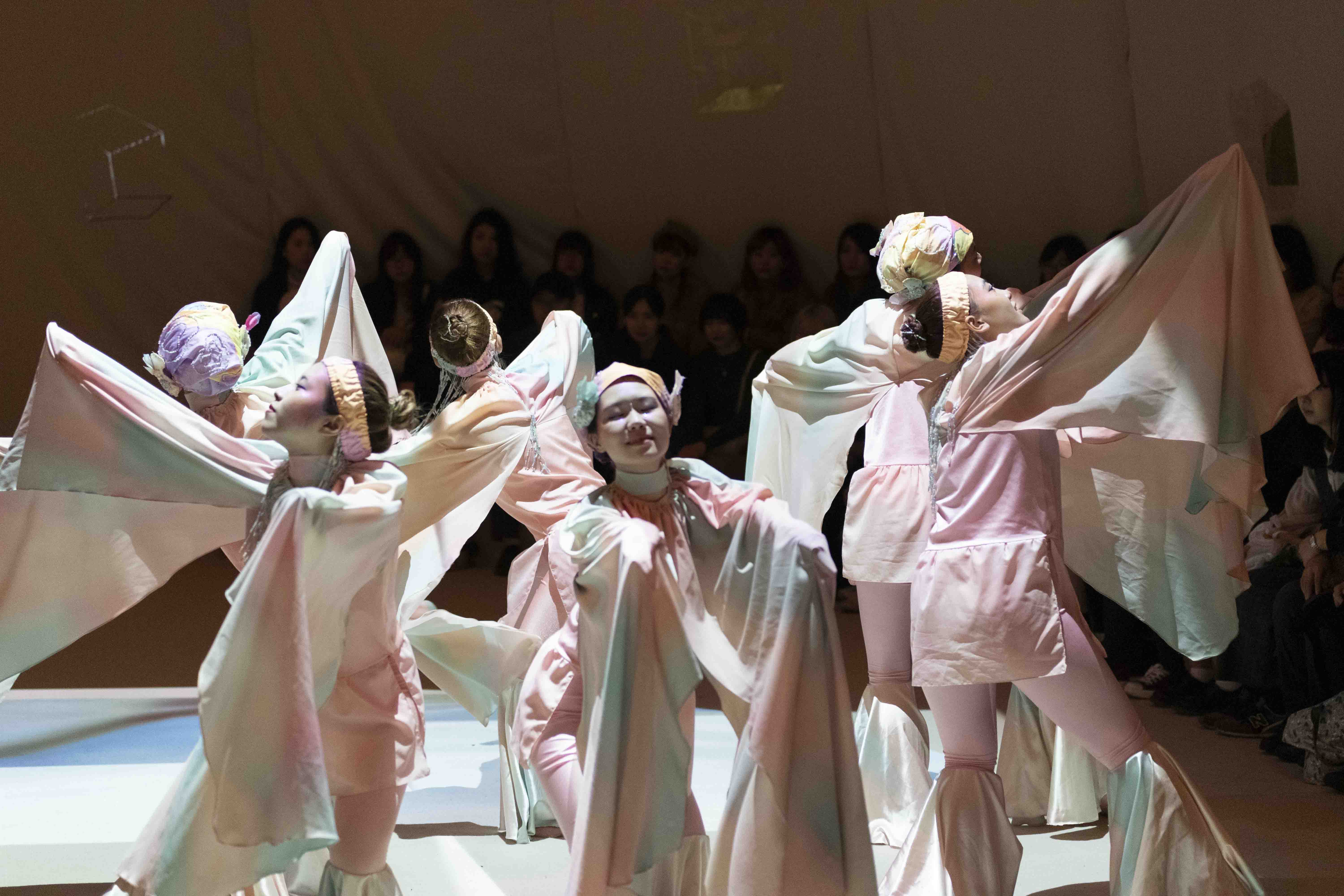 多摩美術大学美術学部生産デザイン学科テキスタイルデザイン専攻3年が中心となり芸術祭で毎年行われる、学生たちで舞台、衣装、演出すべてを創り上げたパフォーマンスショー、テキスタイルパフォーマンスに撮影班として参加しました。