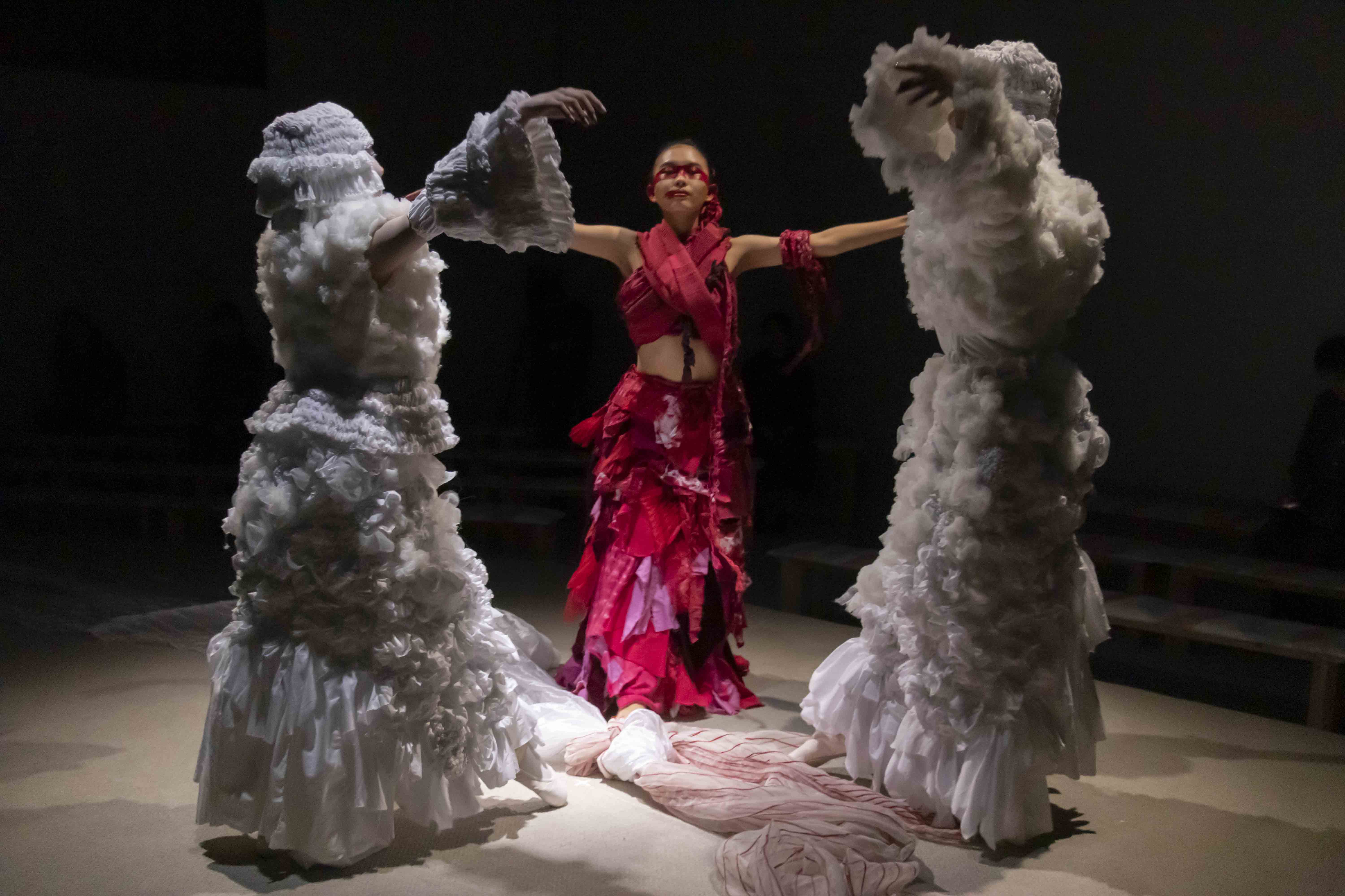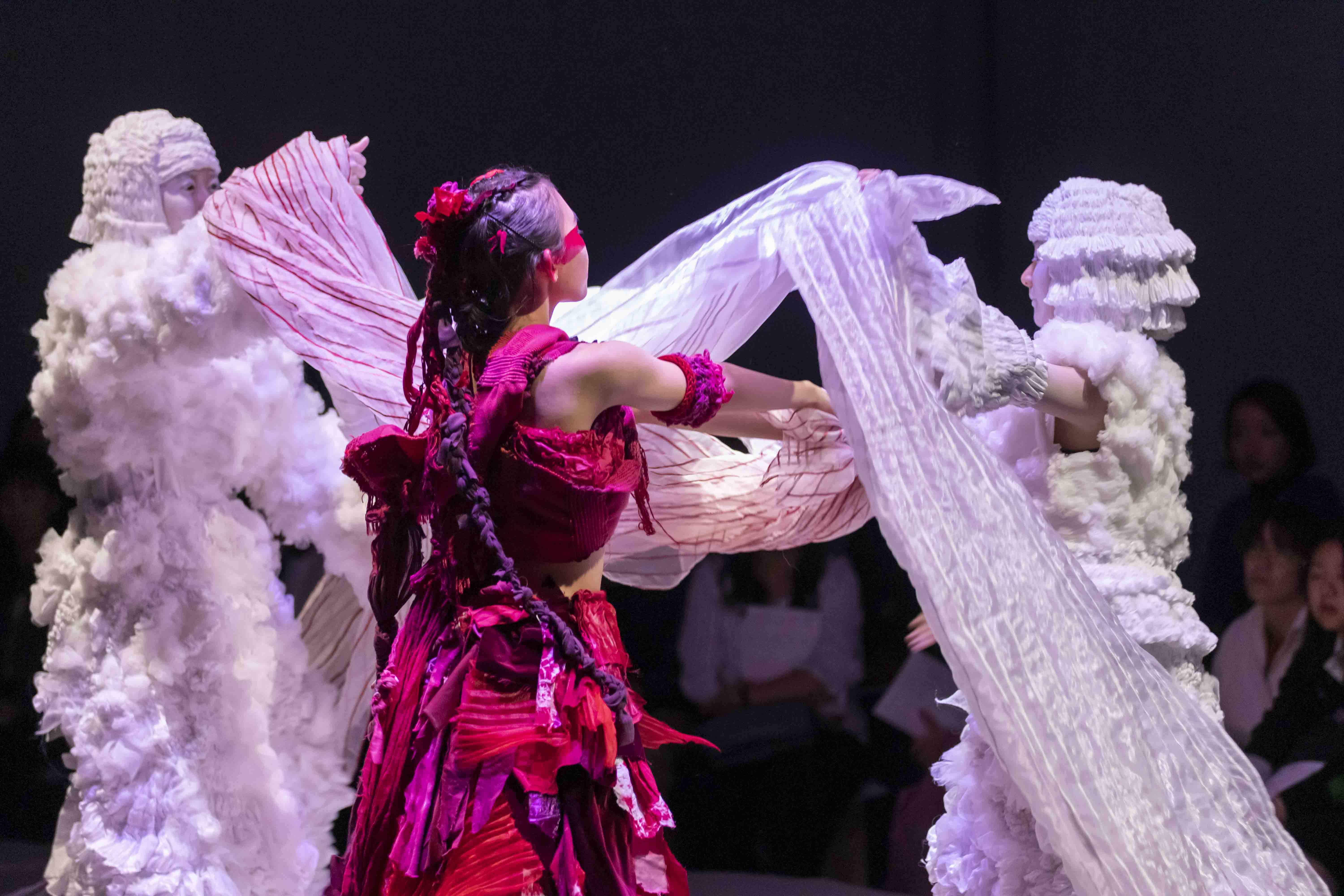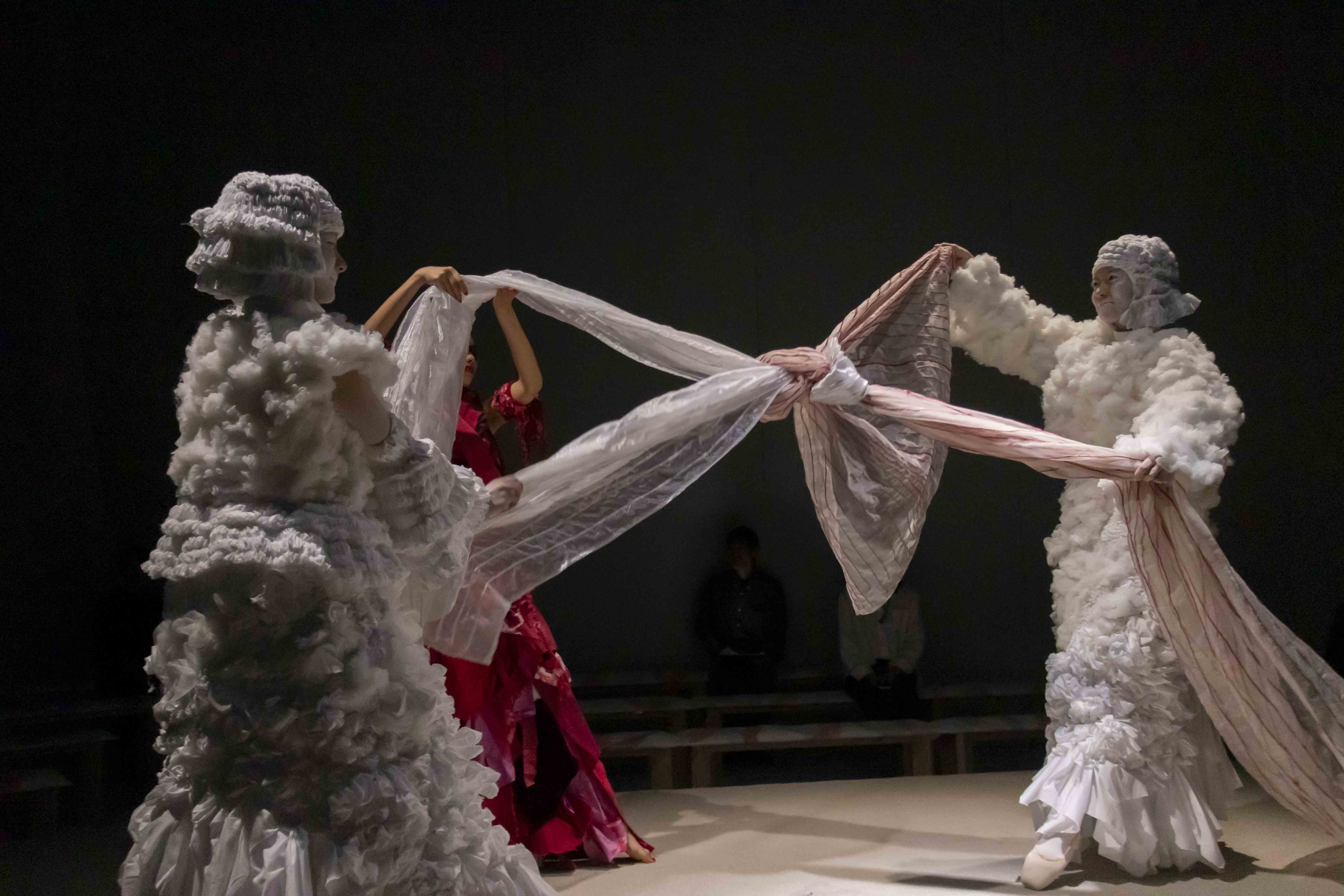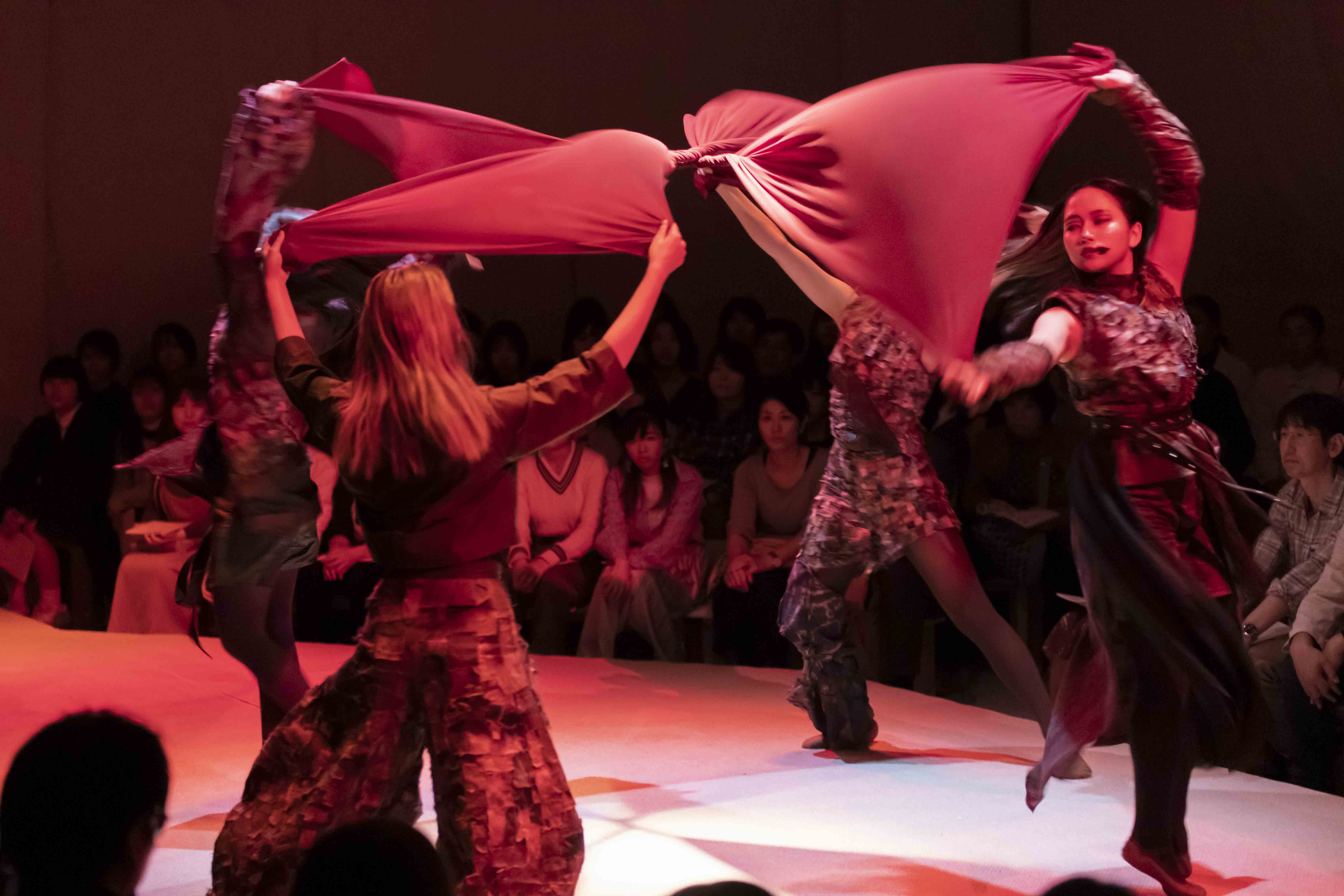 多摩美術大学美術学部生産デザイン学科テキスタイルデザイン専攻3年が中心となり芸術祭で毎年行われる、学生たちで舞台、衣装、演出すべてを創り上げたパフォーマンスショー、テキスタイルパフォーマンスに撮影班として参加しました。
